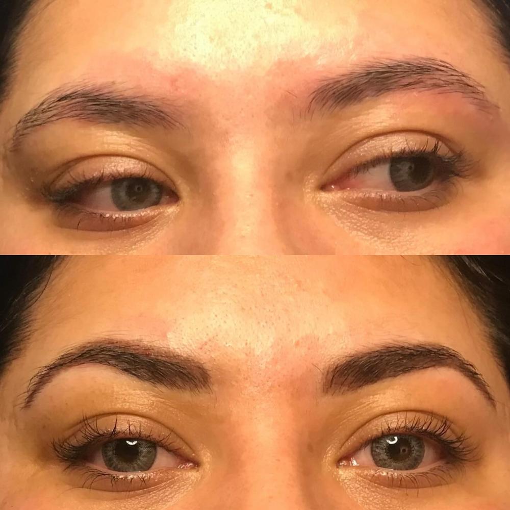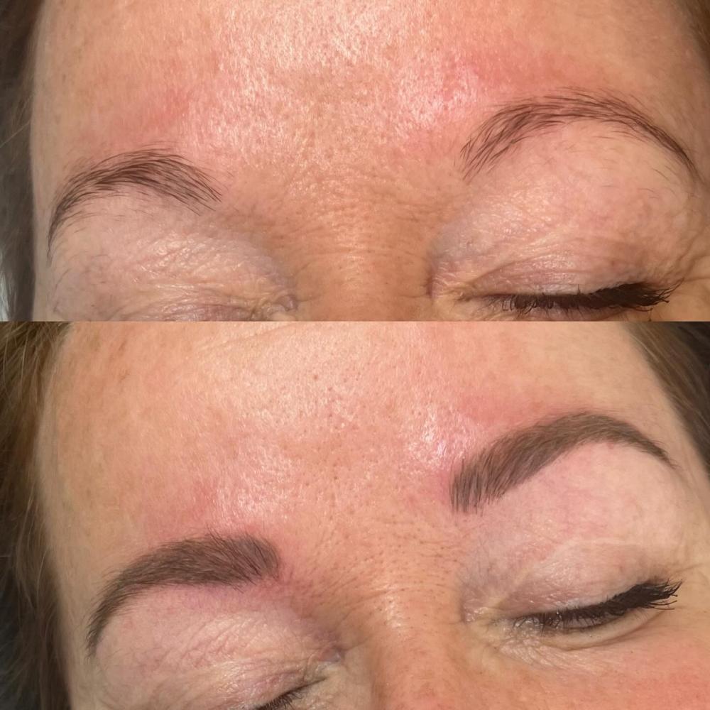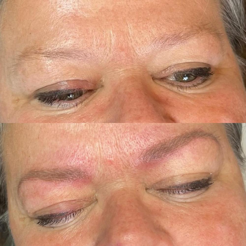 Vi starter ud med at opmåle og tegne dine bryn op i den form der passer dig og dit ansigt. Når du har godkendt det og vi er valgt en farve, tilføres huden farve med den mikrofine nål.
